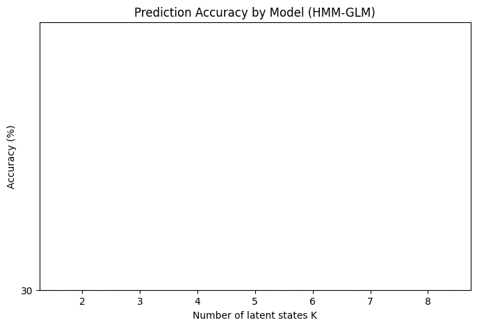 plt.title("Prediction Accuracy by Model (HMM-GLM)")